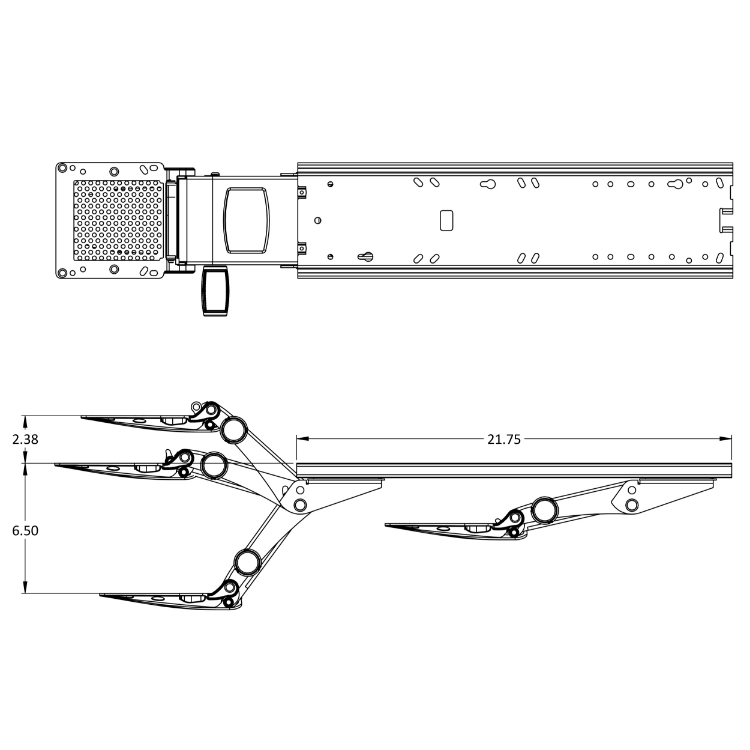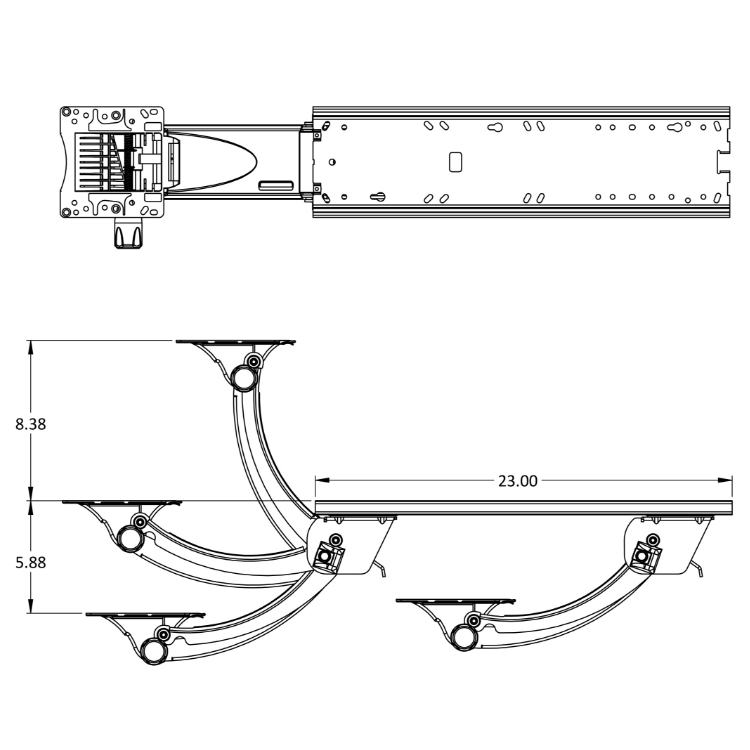 - Lift & lock height adjustment with height range from 8 inches above the track to 6 inches below