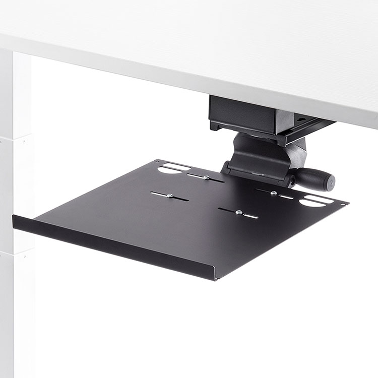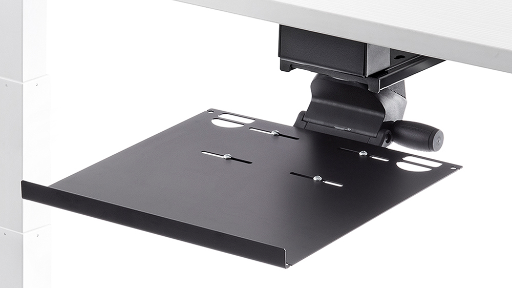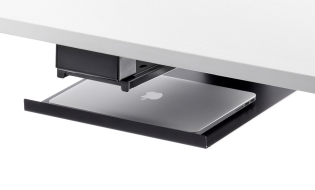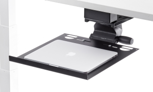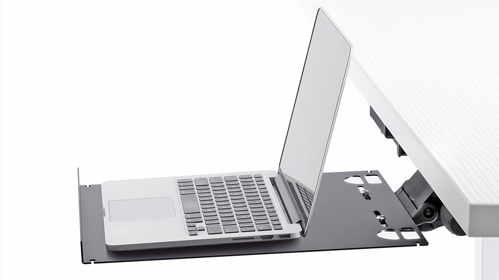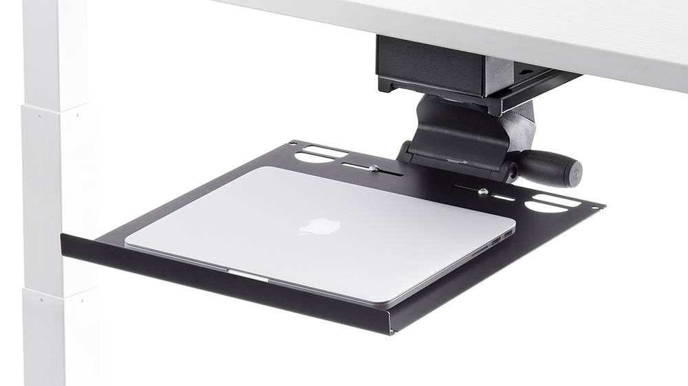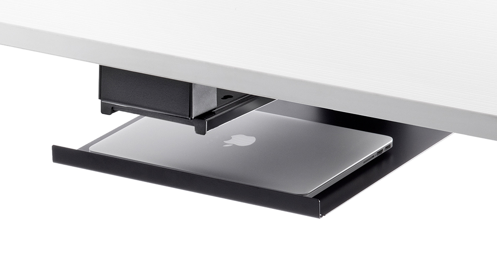 Stow your laptop and free up your workstation. Our Laptop Tray can accommodate almost any size laptop (and docking station) and is built to last with high-quality steel and ball bearing slides.
